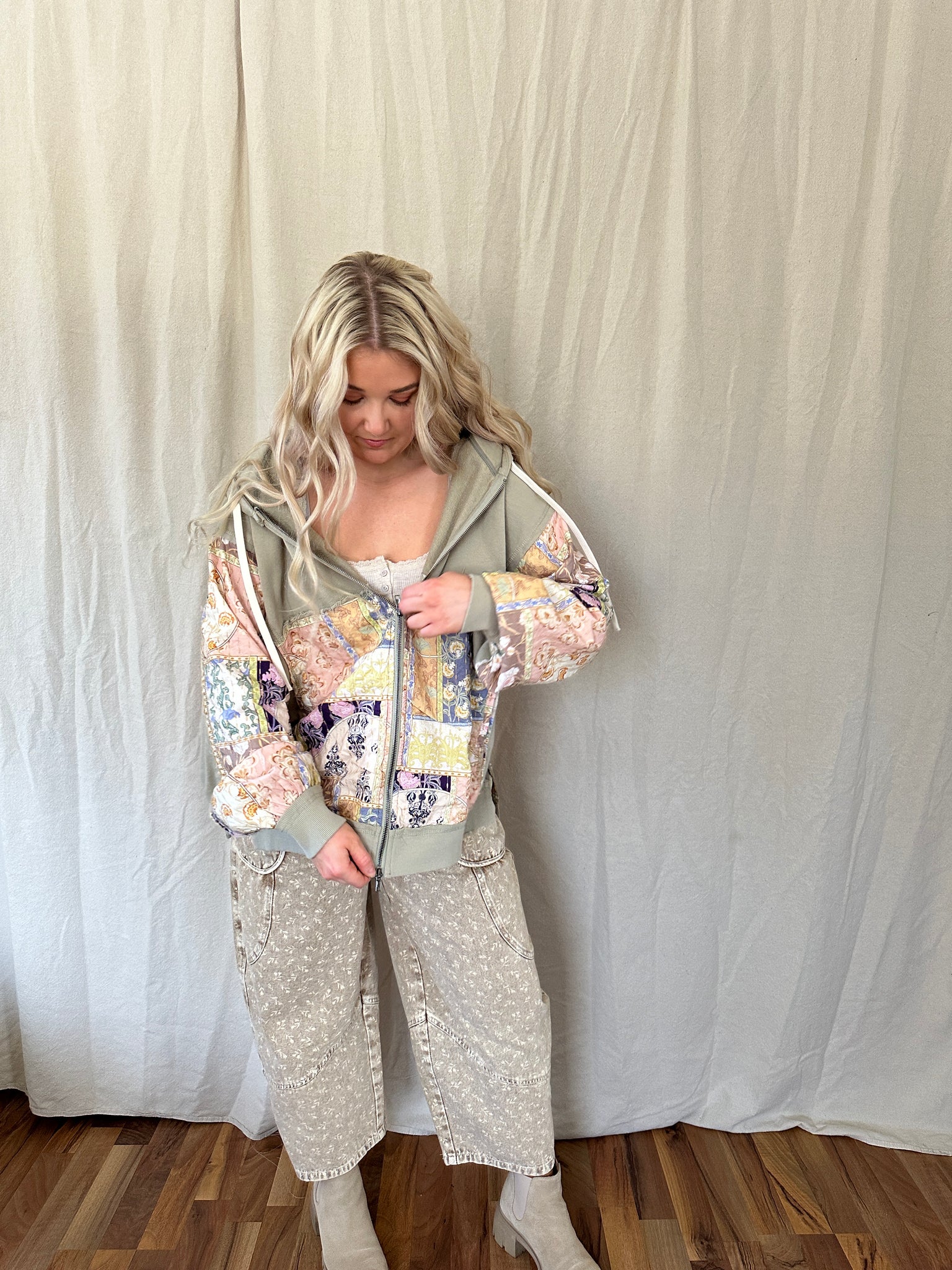 Meet your new throw-on-and-go favorite. The Kantha Patchwork Print Mix Zip-Up Hoodie is crafted in a cozy French terry fabric and finished with a mineral wash for that perfectly lived-in feel.