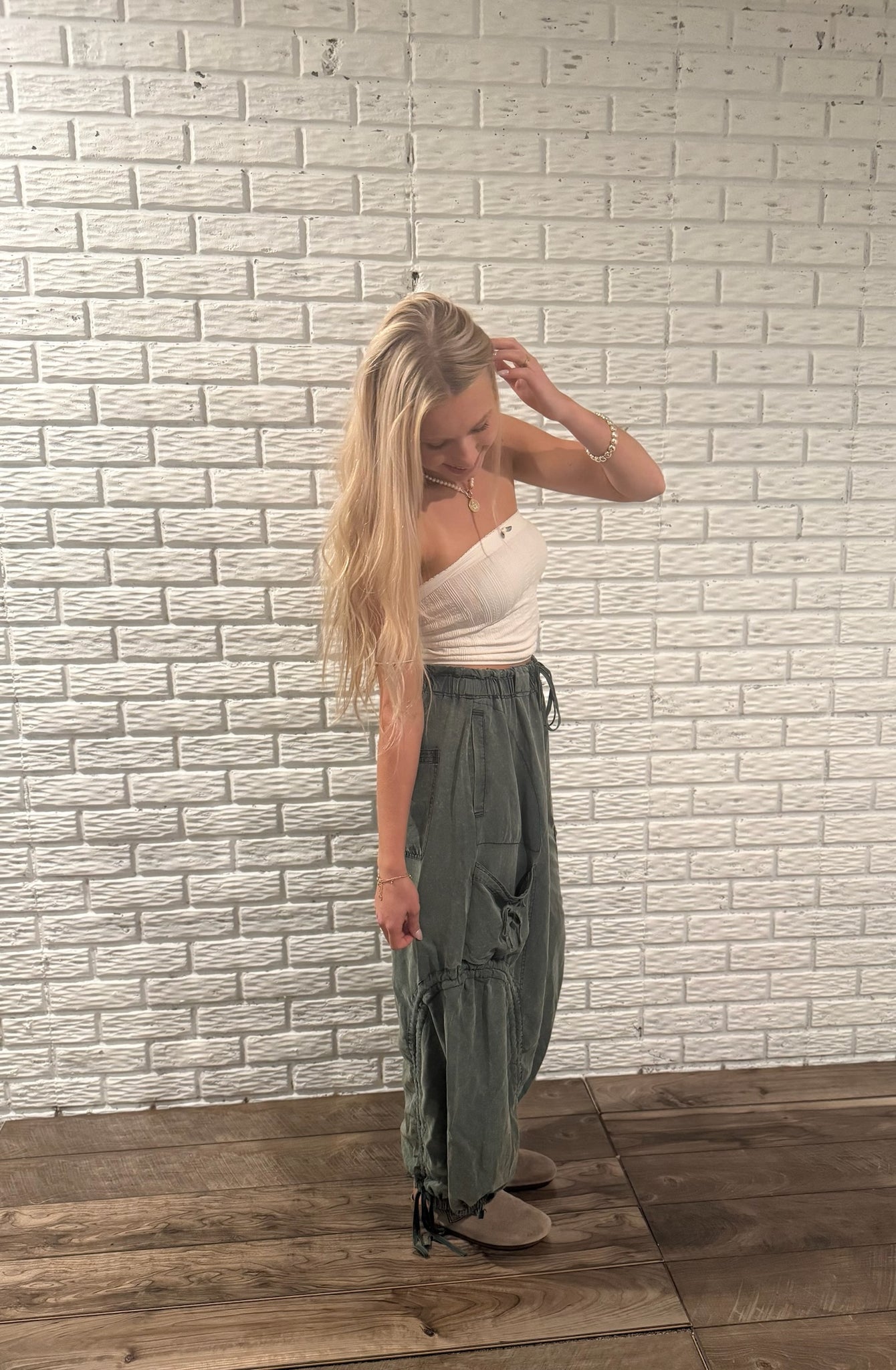 A bold twist on utility wear — these rust-washed parachute pants feature exaggerated cargo pockets, rushed detailing, and adjustable drawstrings at the waist and ankles. The relaxed, oversized fit and unique seam work give them that perfectly lived-in.