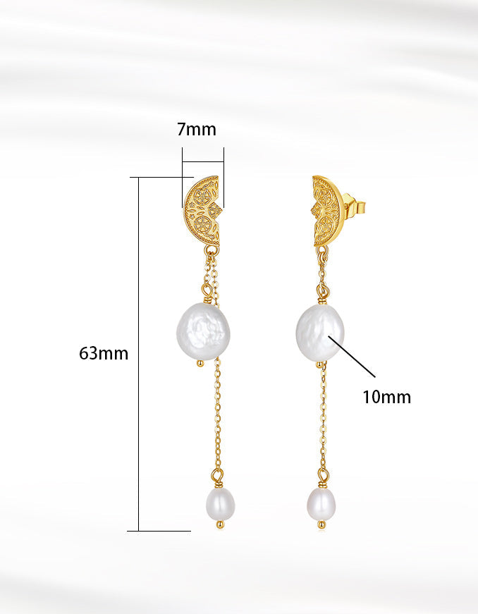 A coastal-luxe moment made effortless. These Half Coin Pearl Tassel Drops feature ornate gold half-coin studs paired with natural freshwater pearls that sway with every step.