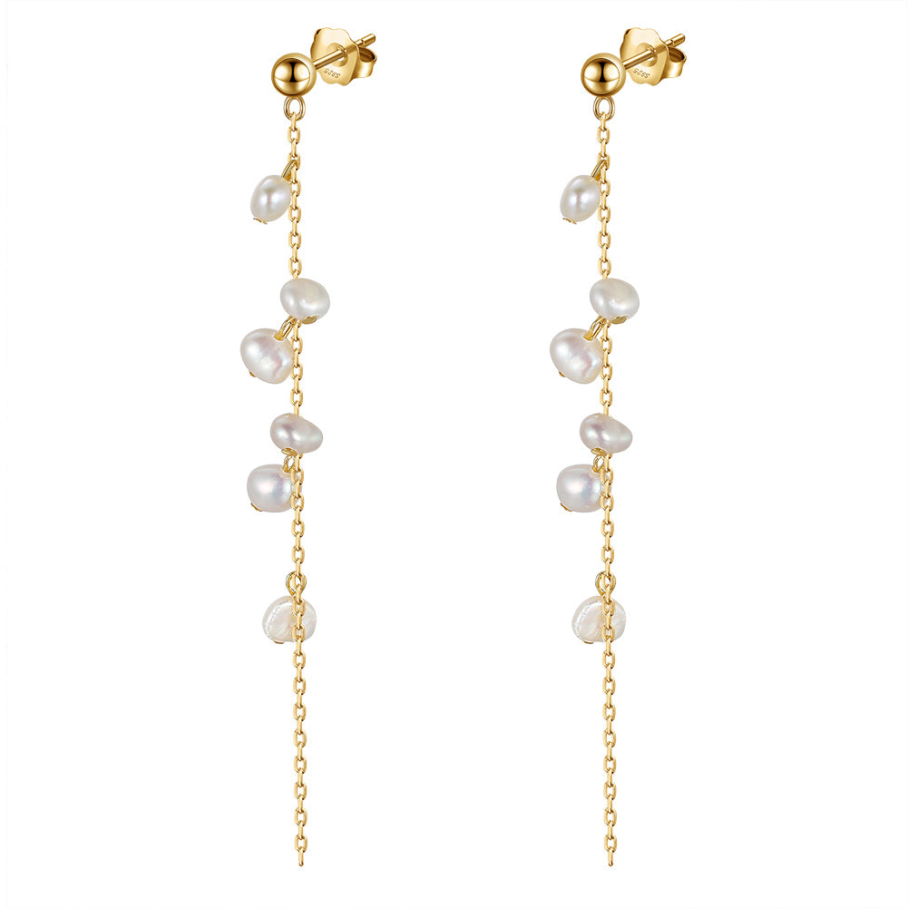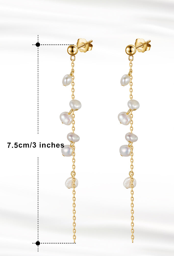 These delicate tassel drops feature petite freshwater pearls cascading along a gold-plated chain for effortless coastal elegance. Dress them up for a night out or pair them with your favorite oversized sweater for that dreamy, boho-meets-elevated vibe.
