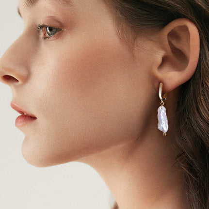 These everyday Baroque Pearl Hoops pair modern gold-plated huggies with naturally shaped freshwater pearls that shimmer with soft iridescence. Lightweight, comfortable, and chic for any occasion, from coffee runs to date night.