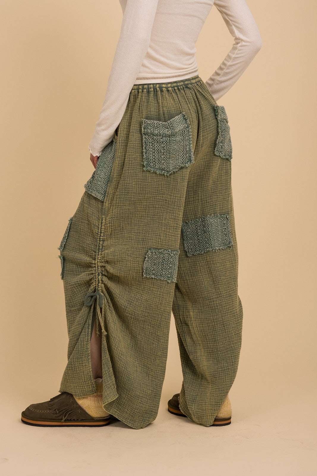 Made in a soft gauze-like fabric with crochet-style patch details, these pants feel earthy, and effortlessly lived-in. Featuring an adjustable side cinch for shape, oversized pocket patches, and a relaxed flowy fit, they bring that cozy artisan vibe. 100% cotton